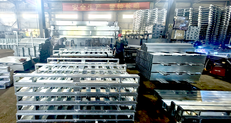 了解詳情四向三腿托盤以方管C形狀型材滿鋪面,機械拋丸除銹 改變表面鋼性 靜電沙紋噴塑。支撐腿方管折彎處理,圓角過渡,保護地面?!?